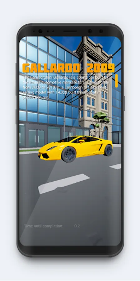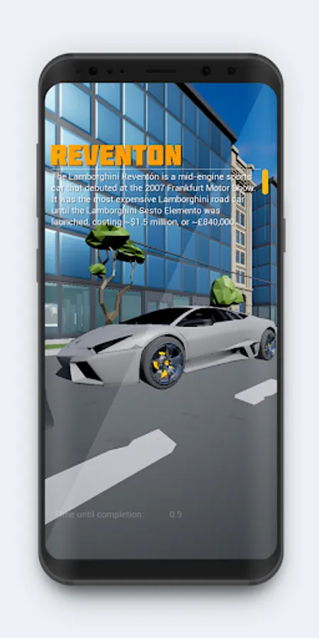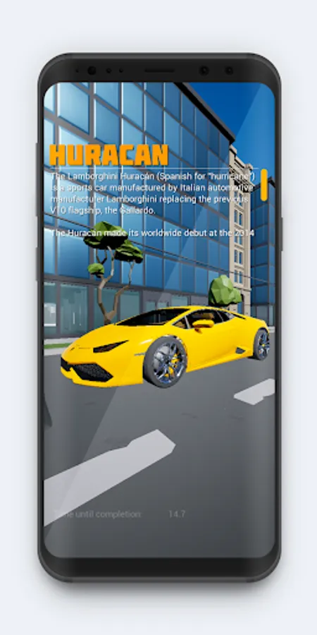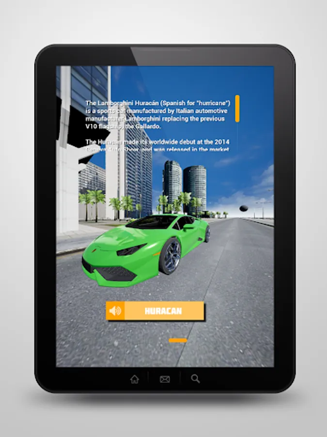 Upon choosing the engine sound you wish to play you will also get a brief text displaying interesting information about the selected Lamborghini model along with the actual car displayed in motion.