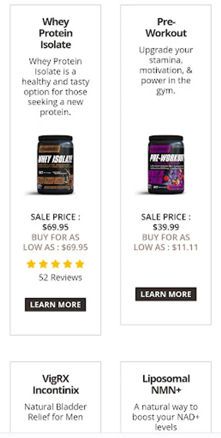 These products include dietary supplements with full ingredients of every product so you can make the best decisions for your needs. A breakdown of all identified ingredients on every product.