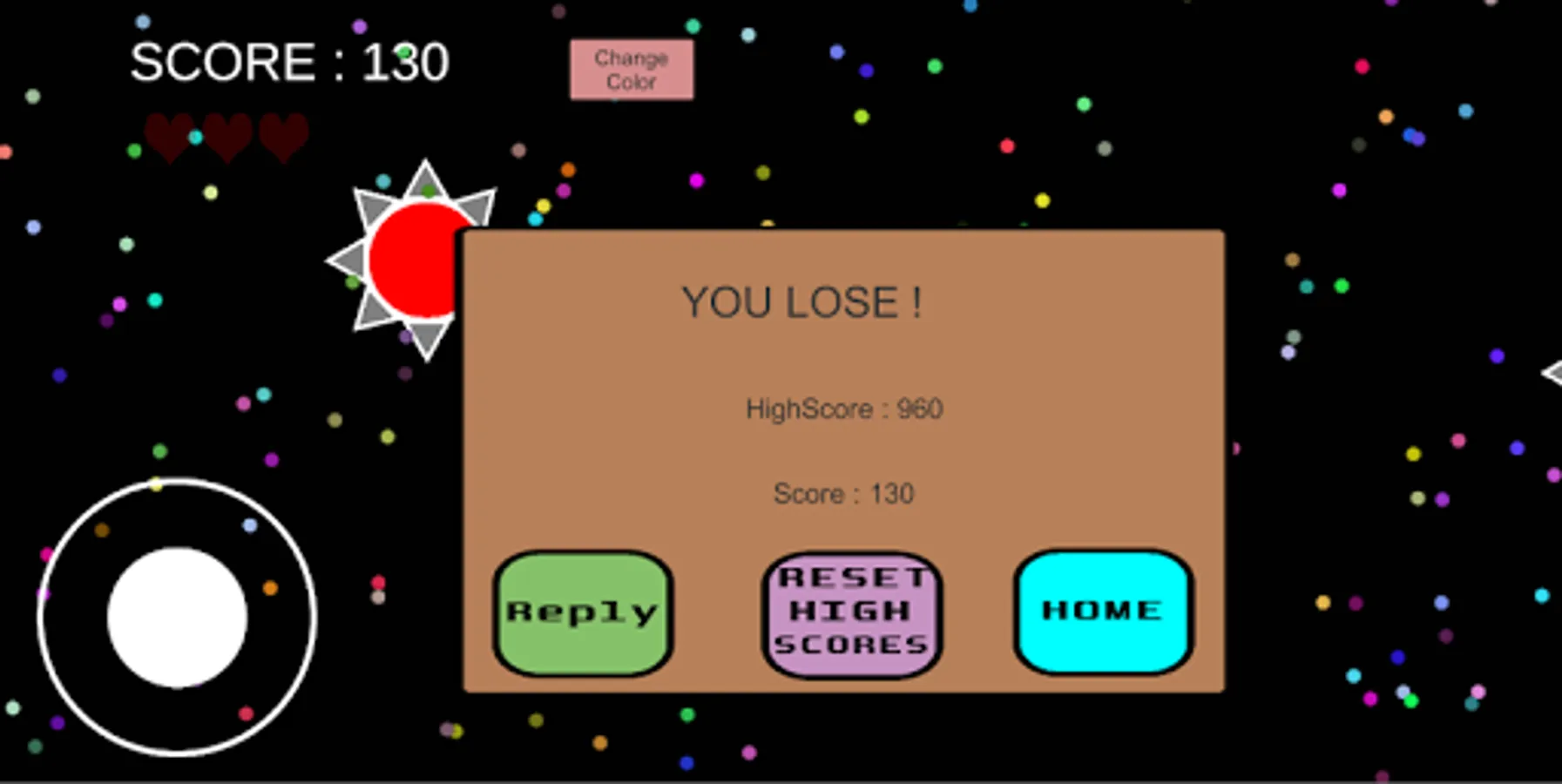 As you collect the orbs, your score increases by 10. You have 3 lives, if you touch enemy spheres, your health will decrease. If you run out of time, the game is over. Try to get the highest score.