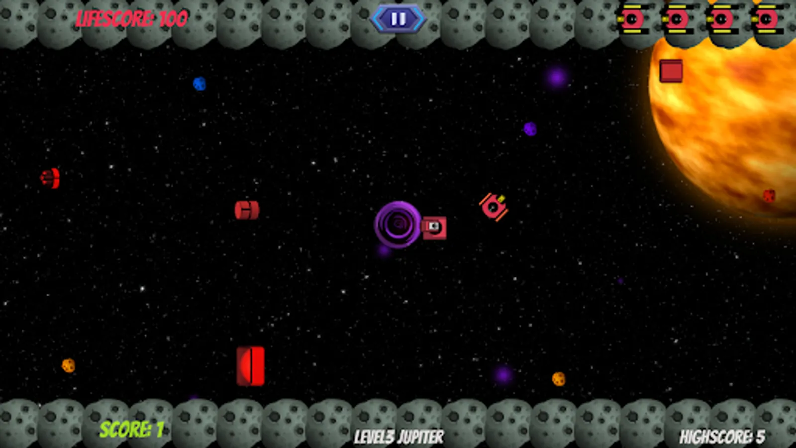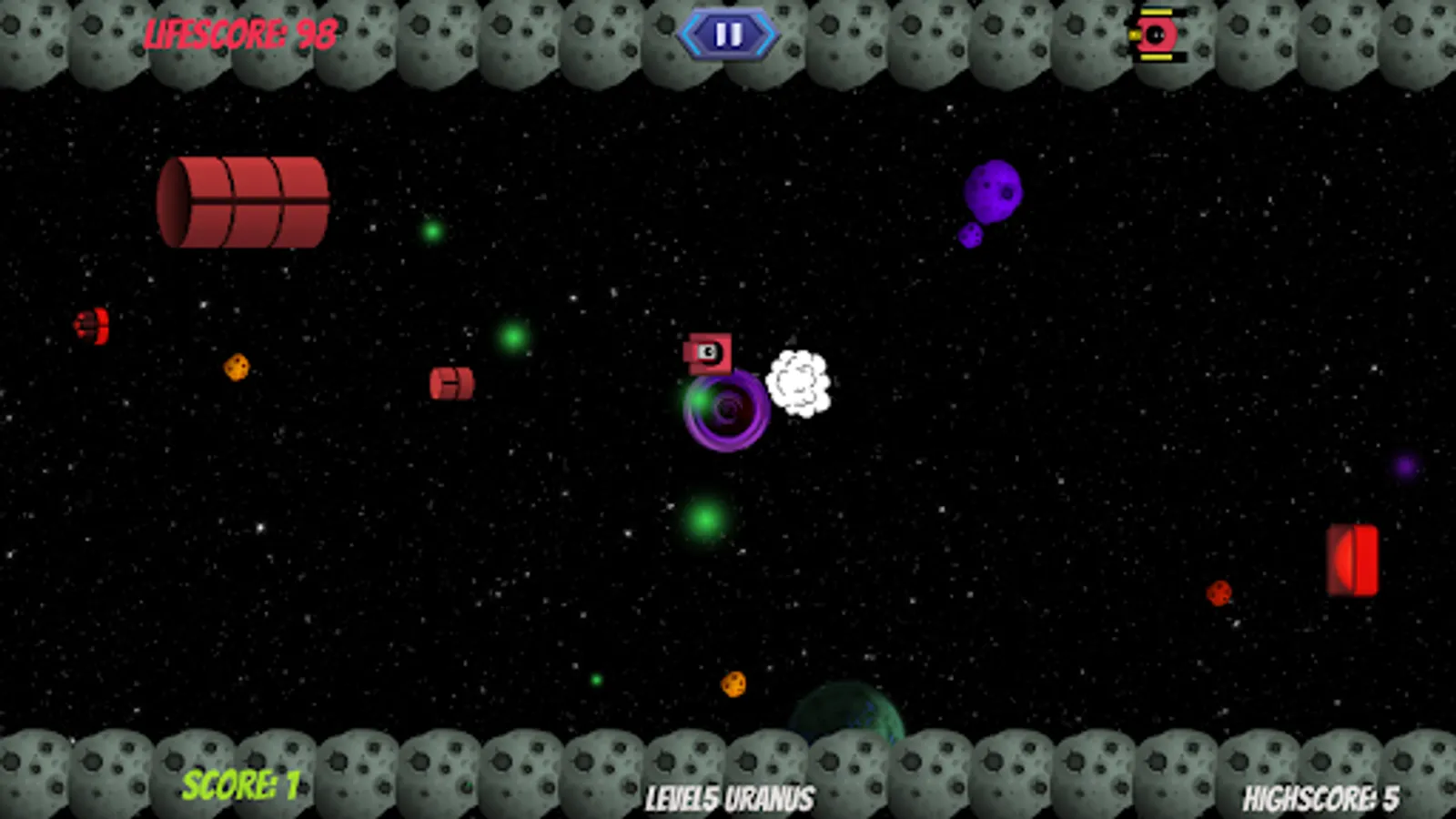 Very entertaining and addictive game that allows you to know the planets of the milky way, the mission is to try to collect the parts of your ship and avoid being destroyed by meteorites or the black hole.