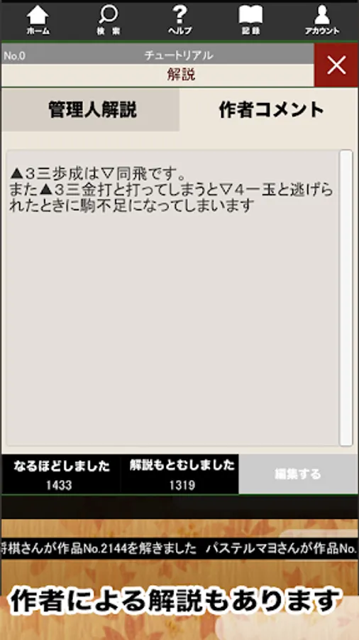 After solving the Tsume Shogi, let's evaluate the work with gratitude to the writers. You can add 1 to 5 stars. Also, bookmarking it will make it easier to understand later.