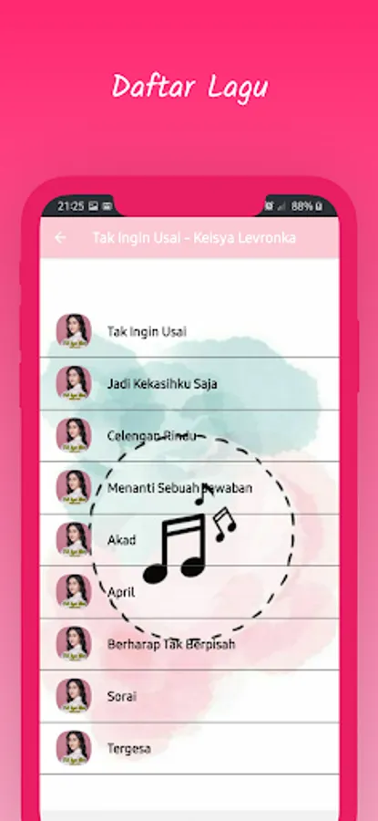 Immediately download and listen to the latest fun Keisya Levronka songs through this application.