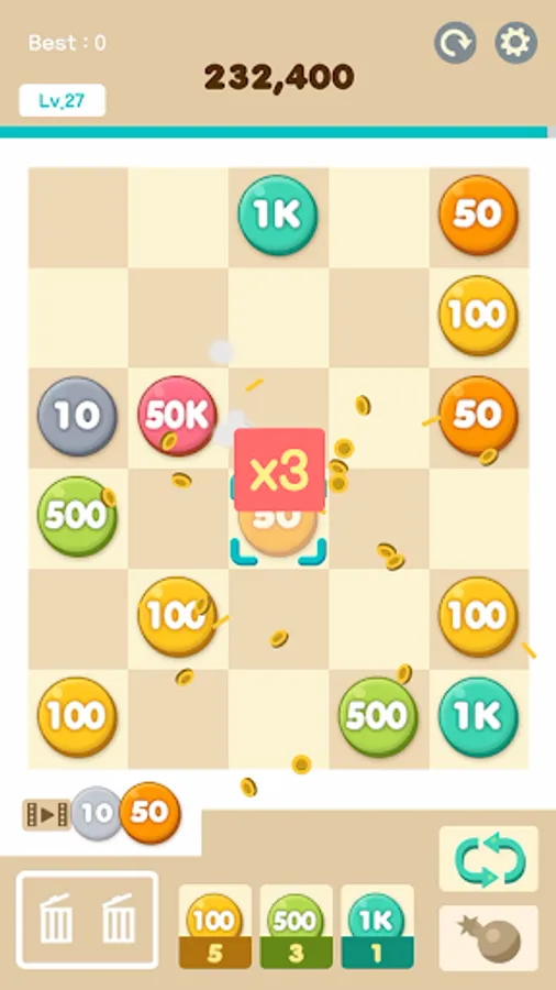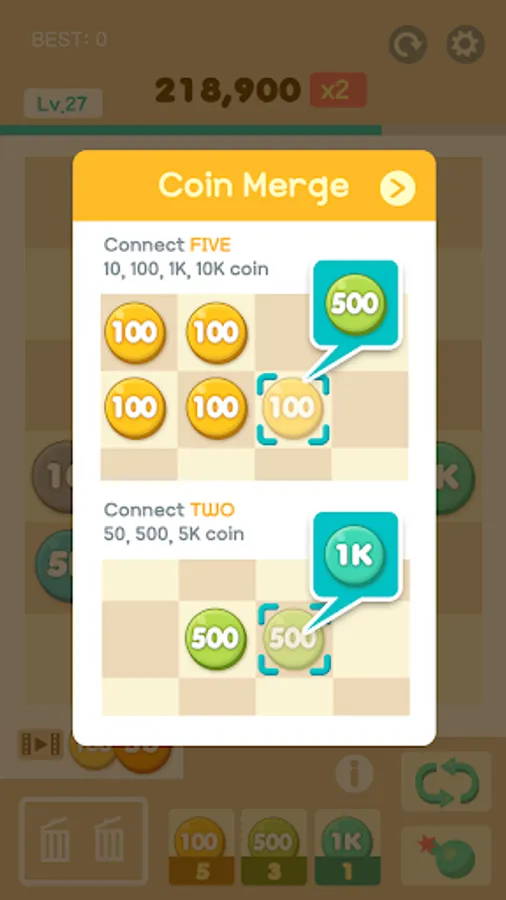 ○Merge coins to get a higher score.
