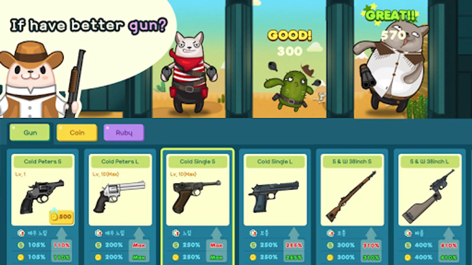 ▶ To get more points and coins, you need to get a better gun.