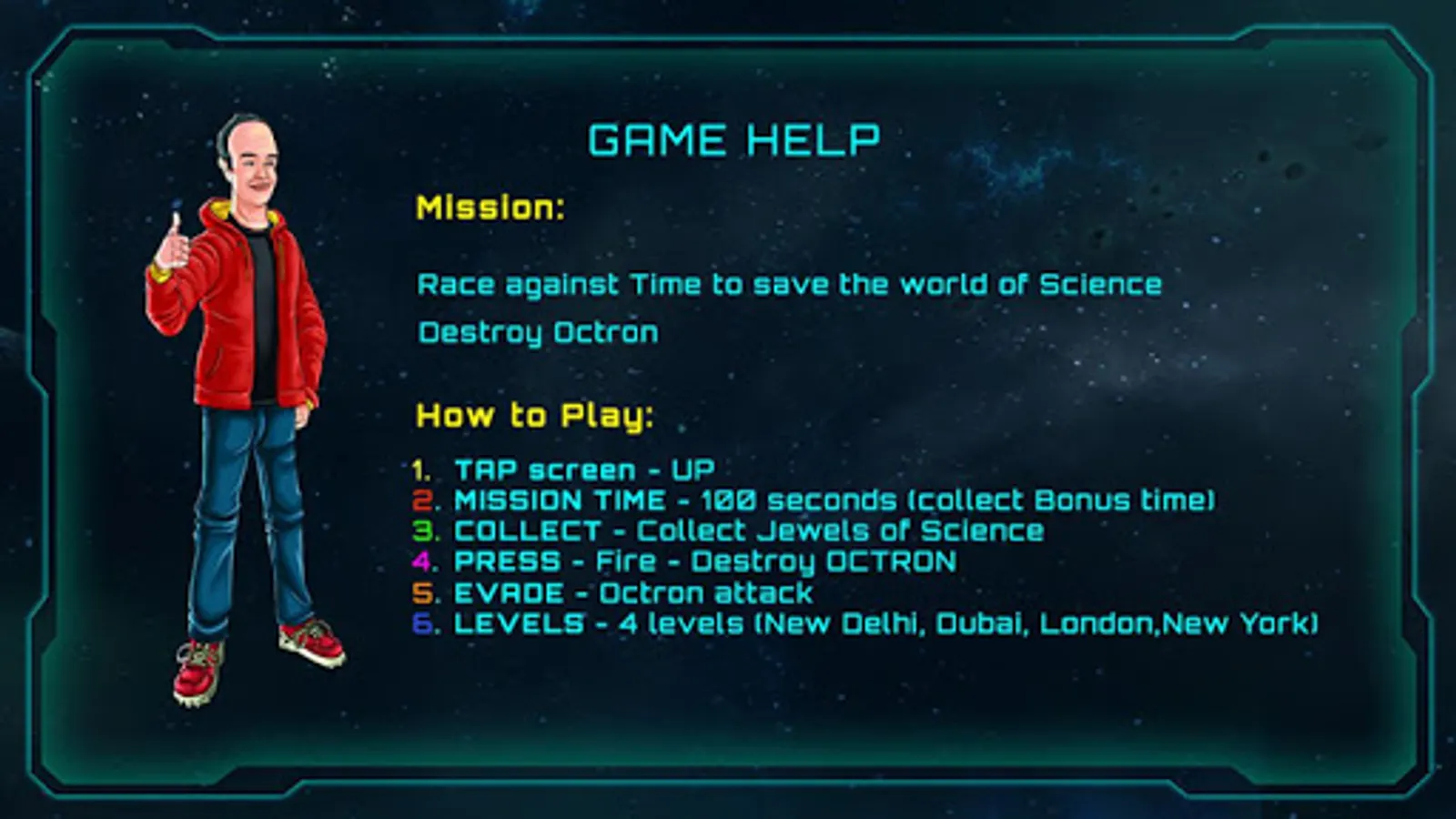★ 100 seconds countdown challenge: Players have to collect Jewels of Science in 100 seconds . Bonus health and time increase awarded but watch out for Octrons gangs as their fire O Rays to stop you