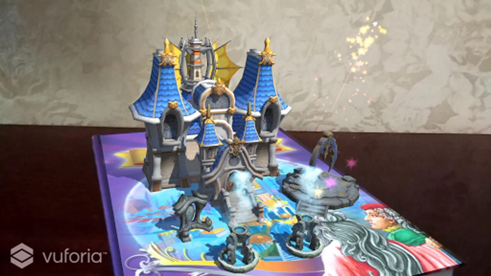 Download and install the application on your mobile or tablet, point the device’s camera on the cover, and it will come to life, touch the screen to interact with the character.