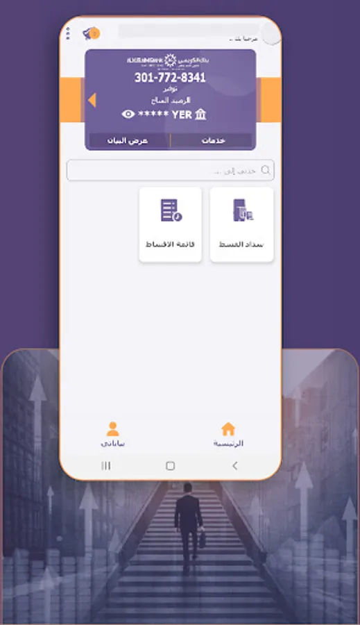 In order to acquire all banking and financial solutions by using Kuraimi Jawal Application, which works currently by means of Android System, all you have to do is open a savings account at the nearest Al Kuraimi Bank branch or office, which are spread all over Yemeni Governorates and subscribing to the service to be right beside you.