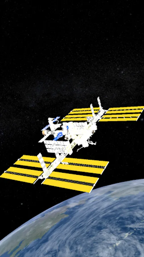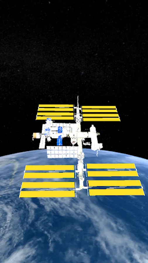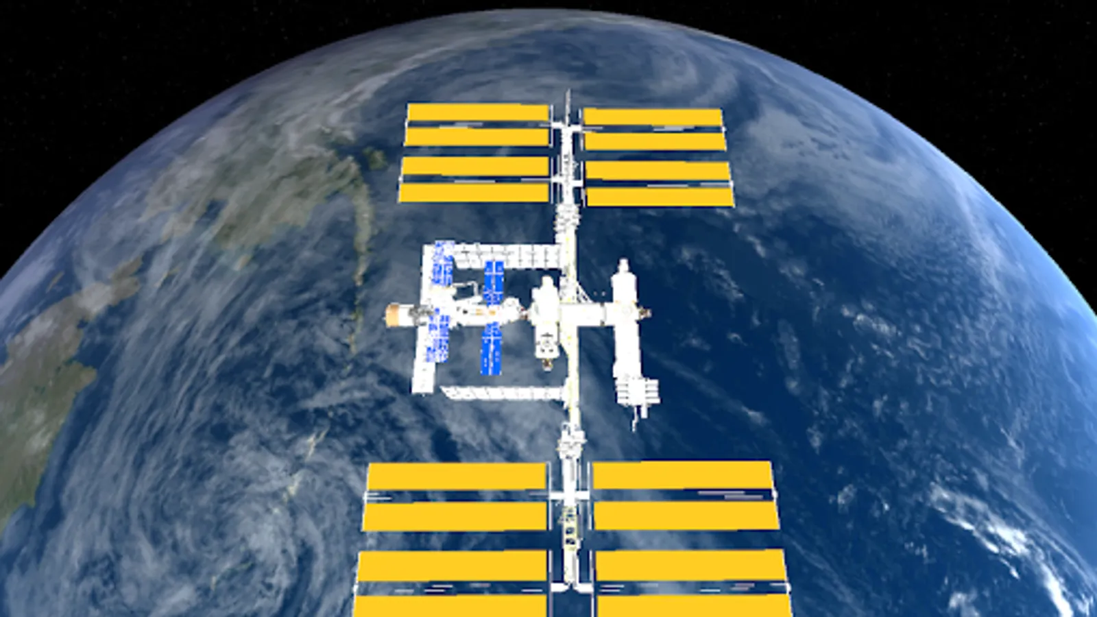 Virtual cameras revolve around the International Space Station by dragging, zoom in with pinch out, and zoom out with pinch in.
