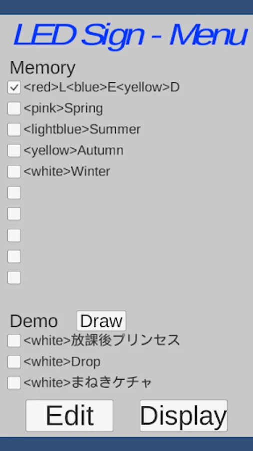 And displays to choose from in the memory.