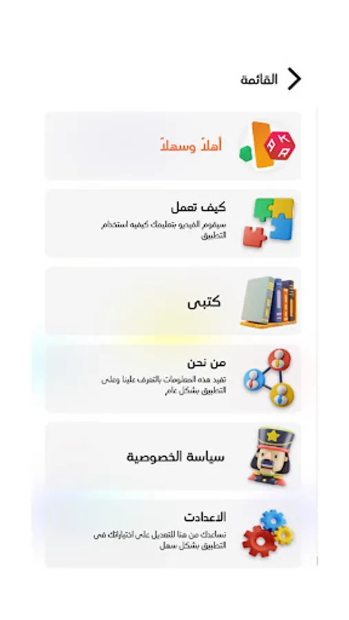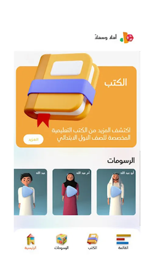 يستطيع الطالب تصفح آخر الأخبار والتفاعل مع شخصيات الكتاب والمتابعة من حيث انتهى في عملية التعليم, كما يمكنه إعادة الدرس لحفظه.