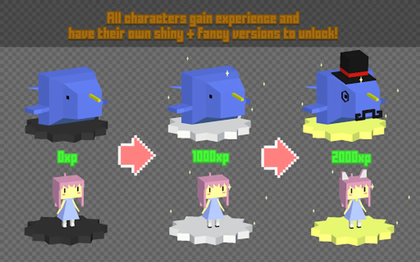 🌟Plenty of fun and creative characters to collect! All characters gain experience and have their own shiny & fancy versions to unlock!