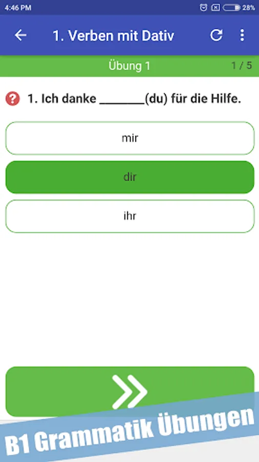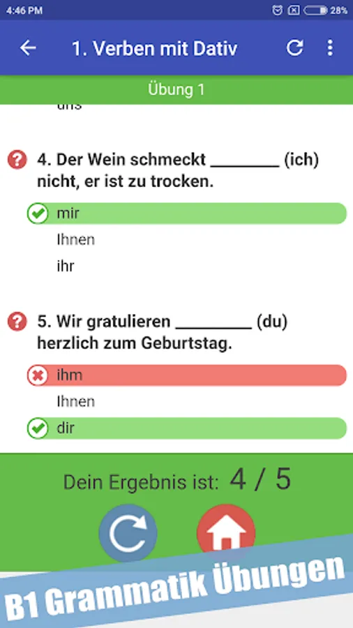 Do you want to learn German or improve your grammar skills. You have the most important tasks and Test. Prepares for the B1 exam.