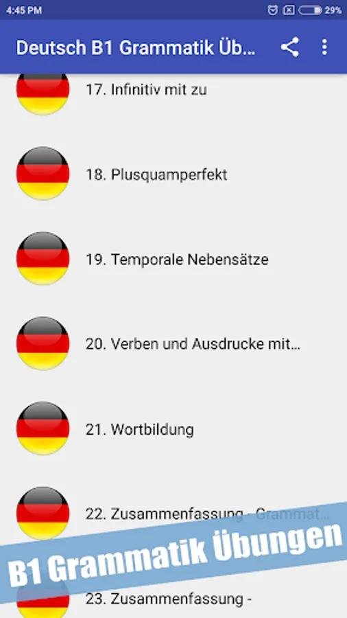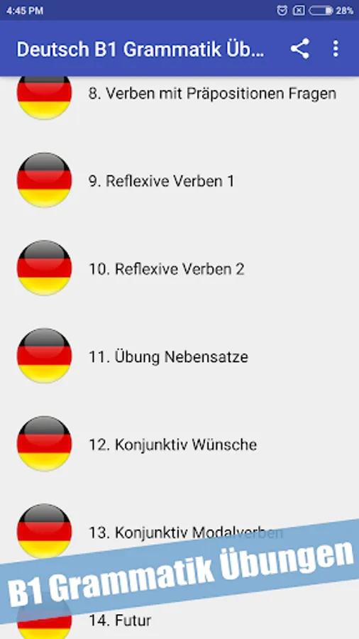 Learn German B1 Grammar Free is one of the best free German learning app for beginners.