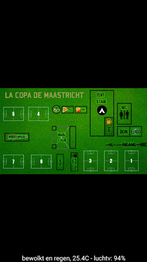 The site map is clearly displayed and can be zoomed in on. The fields can be tapped to quickly get who play at what time.