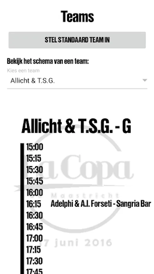 In this modern app you will find all information about the teams and the playing time. Everything appears easy and clear. You can set up your own team and see the times for each field. All times of all teams can be viewed quickly. The times of the DJs and a preview of their great music (soundcloud left).