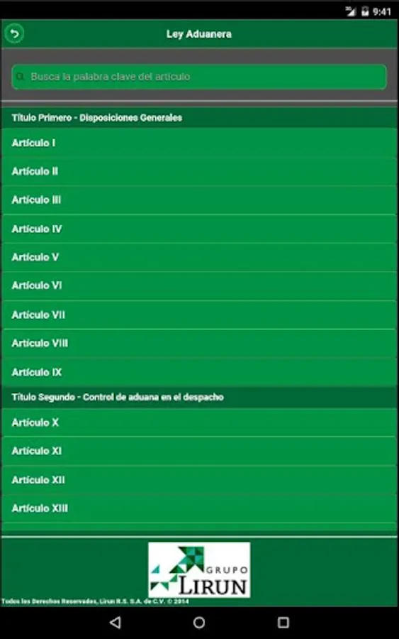 Select the rule or law in the article you want to know where a word, concept or key term is located. Once you enter the word, the issue title and teach in that article is your search. In our Premium version, selecting an item thrown in the search, it will display complete.