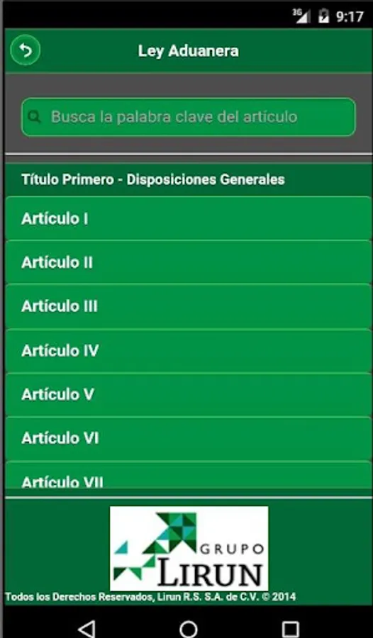 Select the rule or law in the article you want to know where a word, concept or key term is located. Once you enter the word, the issue title and teach in that article is your search. In our Premium version, selecting an item thrown in the search, it will display complete.