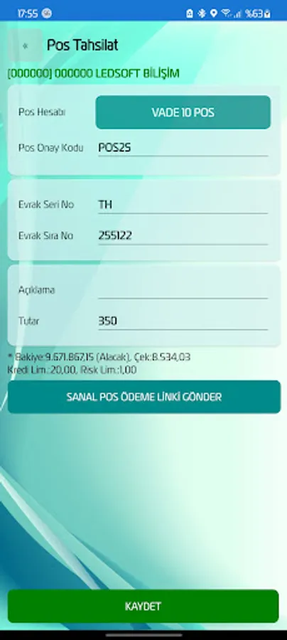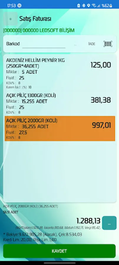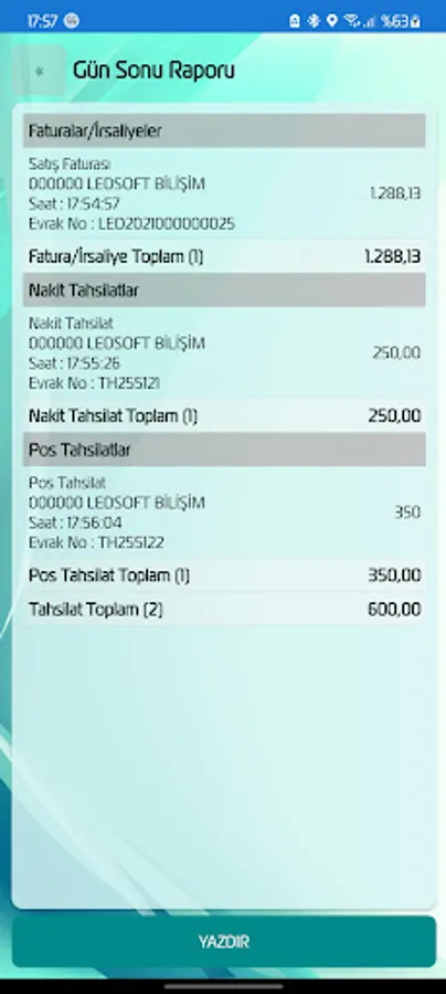 Sales Invoice, Sales Waybill, Logistics Sales Waybill, e-Invoice, e-Archive Invoice, e-Waybill, Cash, POS, Check, Promissory Note Collection Transactions, Virtual POS Collections, Expense Payments, Bank Cash Transactions, Vehicle Loading and Unloading, It provides content such as Warehouse Transfers, Counting Slips, Customer Positioning, Reminders and Reports. It is suitable for online and offline working with synchronization method. Includes output options for dot matrix and thermal printers.
