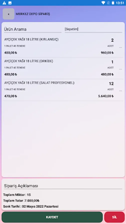 Sardunya Sipariş Yönetimi Screenshots