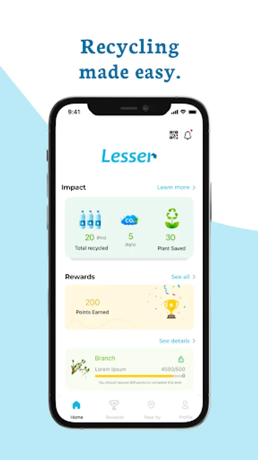 Lesser is developed by Naqaa Solutions for Environmental Services to help address the lack of recycling services for community members in the country who would like to recycle but never find a way to do so. Being one of the highest producers of waste, Lesser contributes in meeting the Saudi vision towards behavioural change about recycling.