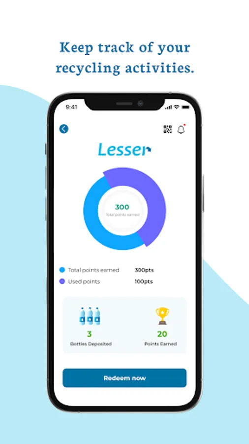 "Lesser is an application directed to help recyclers in Saudi to find the nearest recycling station and dispose of their waste. While doing so, the recyclers will get points that allow them to redeem in exchange for discount codes or helpful products.