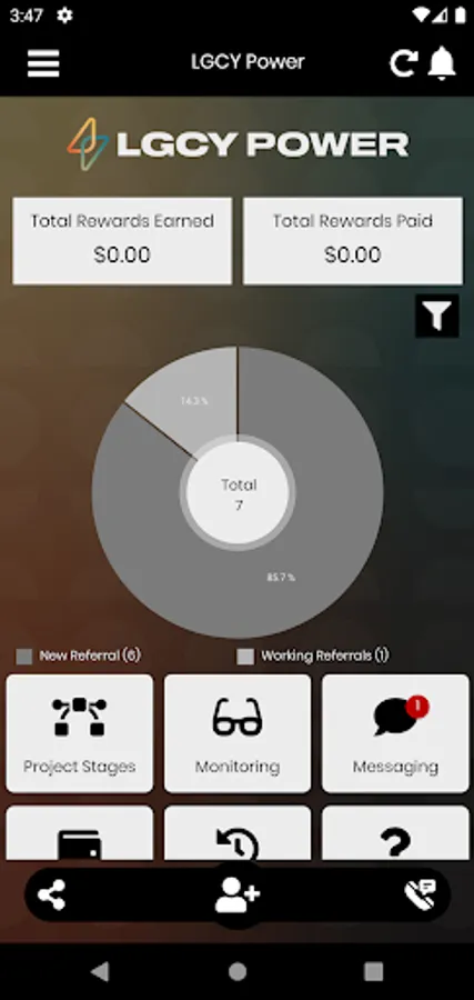 LGCY Power is a free app available for anyone to download and is used for those that want to earn rewards by sending referrals to LGCY Power. It is as simple as downloading the App, selecting the sales rep and registering. Once registered, you can begin sending referrals right away. It is the one app that will allow the user to easily submit referrals to LGCY Power and track the progress of your referral and rewards right on your mobile device. Referring has never been so easy.