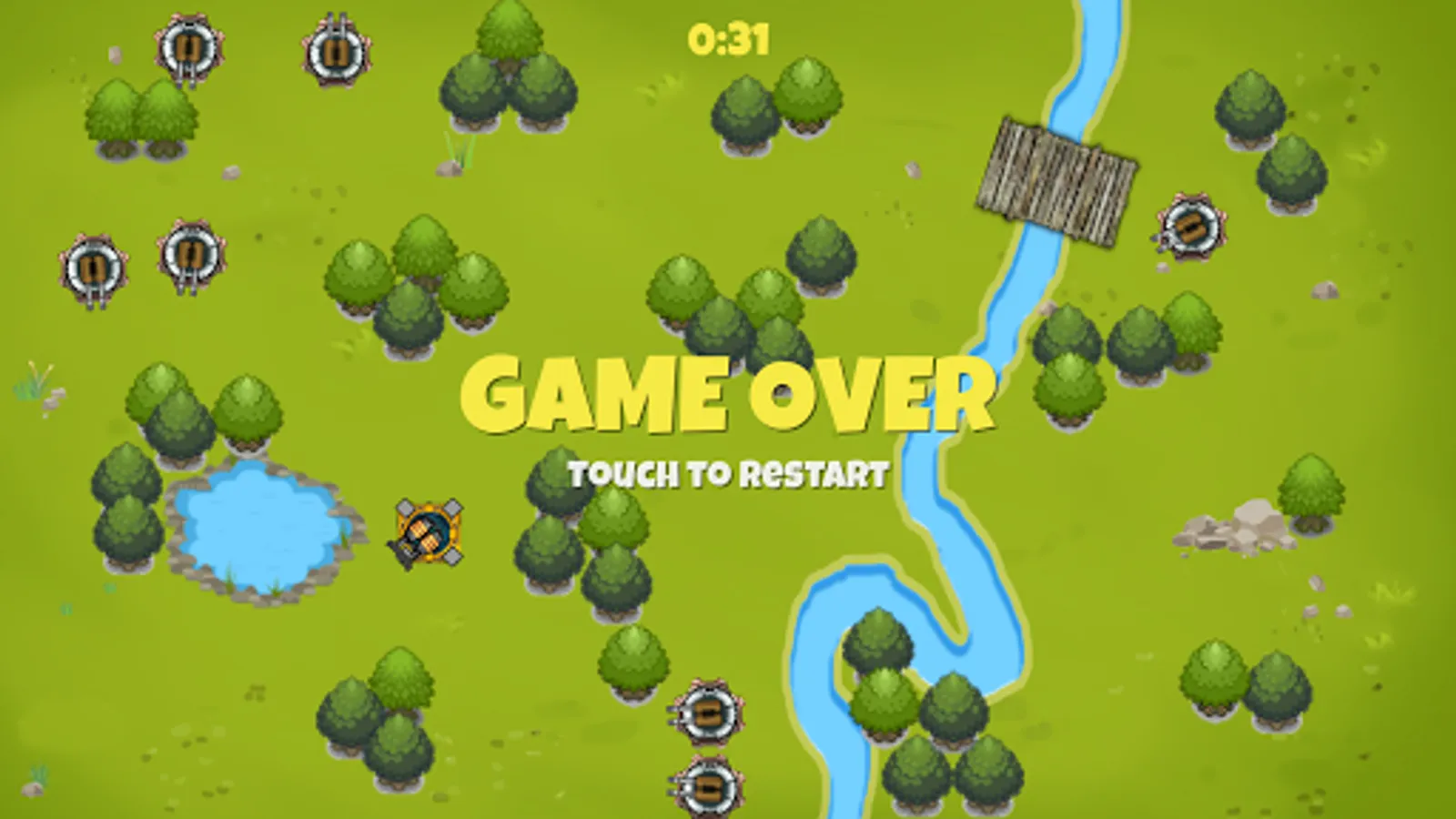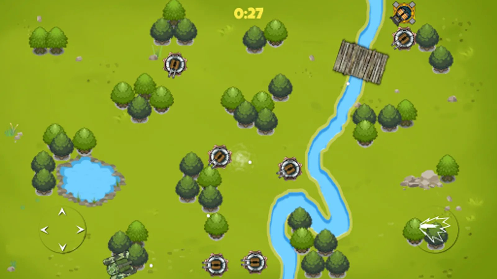 Once you stand for a while, you will face a cooler and more powerful enemy: Sonic wave tower gun. They can hit you with larger-scale sonic waves, which could go through trees on the map. Luckily, these towers have one-hit-die behavior as well, and you can use your flexible movement of The Tank to hit them.
