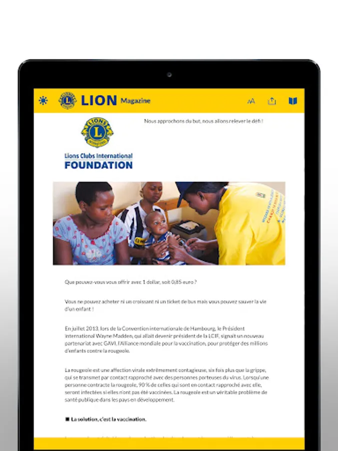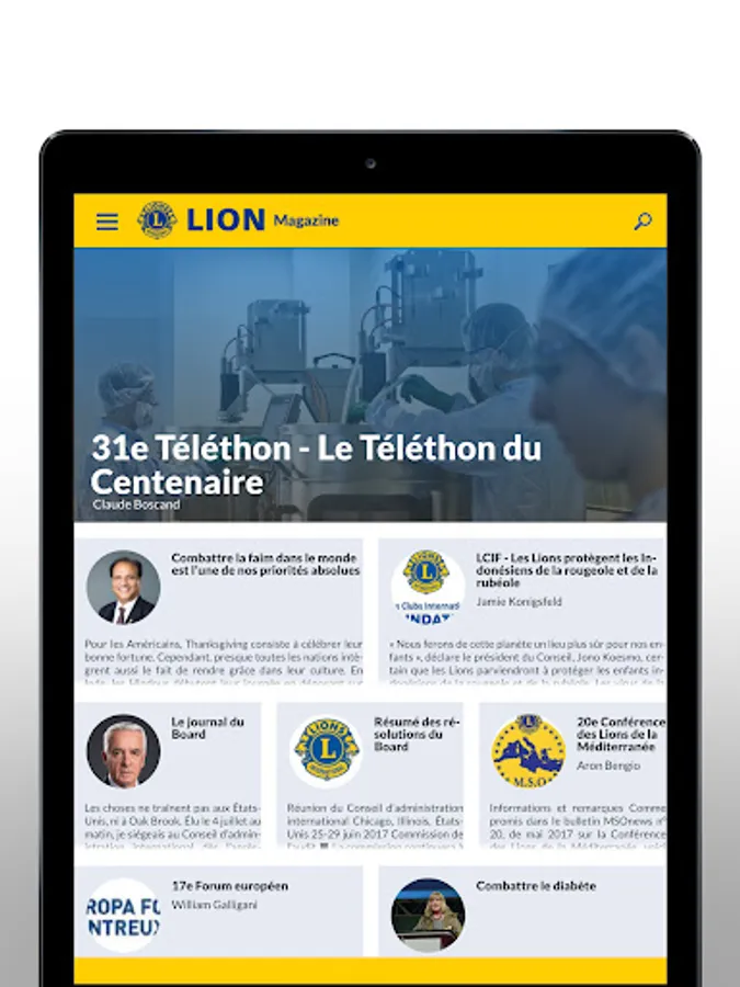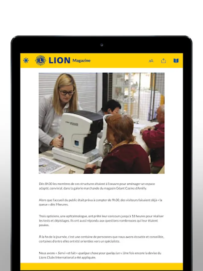 The application LION Magazine plunges you into the heart of the action to discover the transforming action of the Lions. Touching stories and compelling photographs capture the impact of the world's largest service organization. Locally and globally, Lions tackle tough problems faced by mankind: hunger, vision problems, environment, childhood cancer and diabetes, to make a better world for all. Discover our action in LION Magazine.
