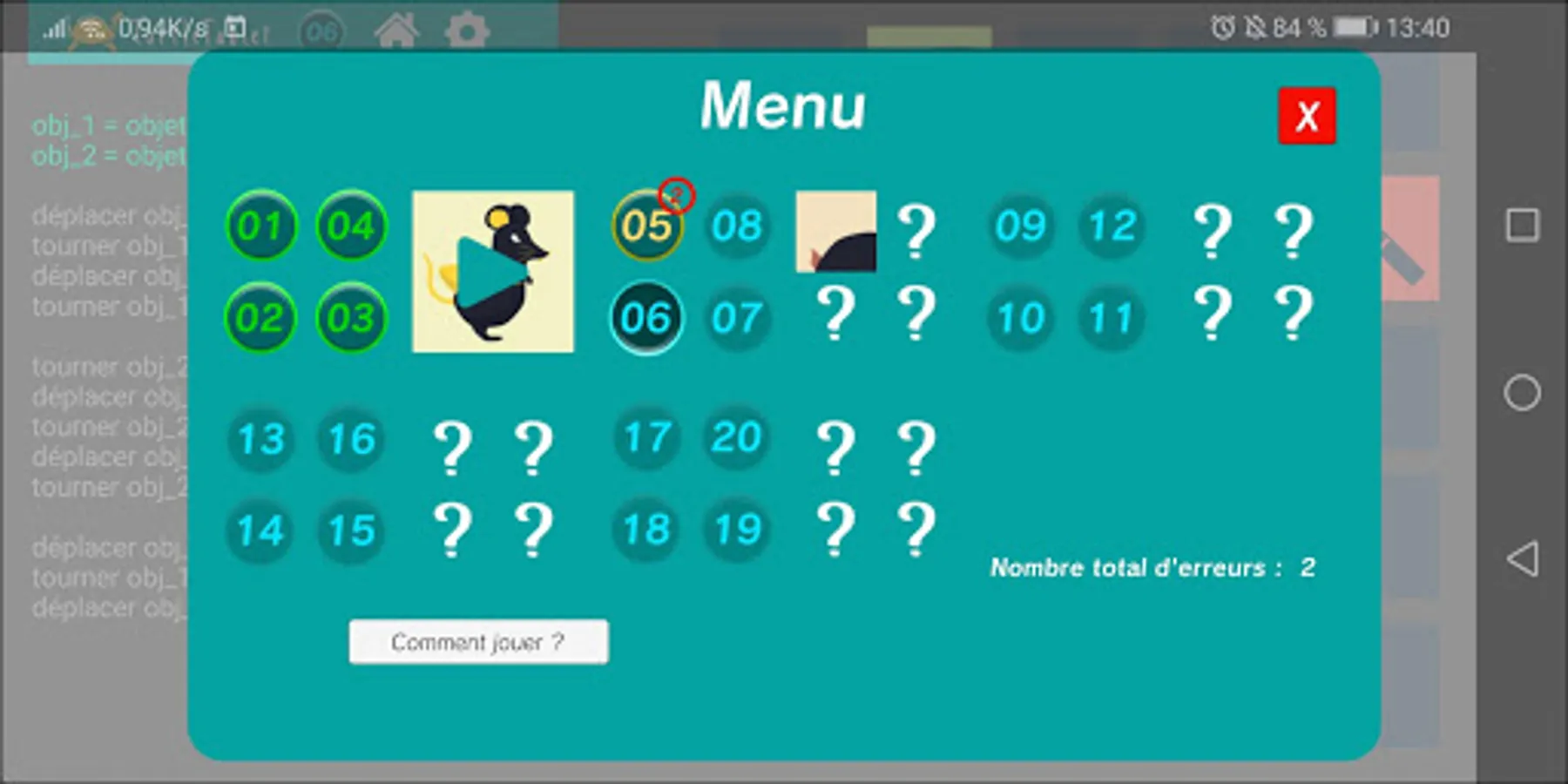 If you want to use this tool with your class, we simply ask you to inform us by sending an email to iza.marfisi@univ-lemans.fr. We can send you an educational booklet, co-written with pilot teachers who have tested the application, to help you use the game to meet the educational goals set by the curriculum. In return, we hope you will take the time to answer a short feedback questionnaire, which will be very useful for our research. Any suggestions for improvement are also welcome.