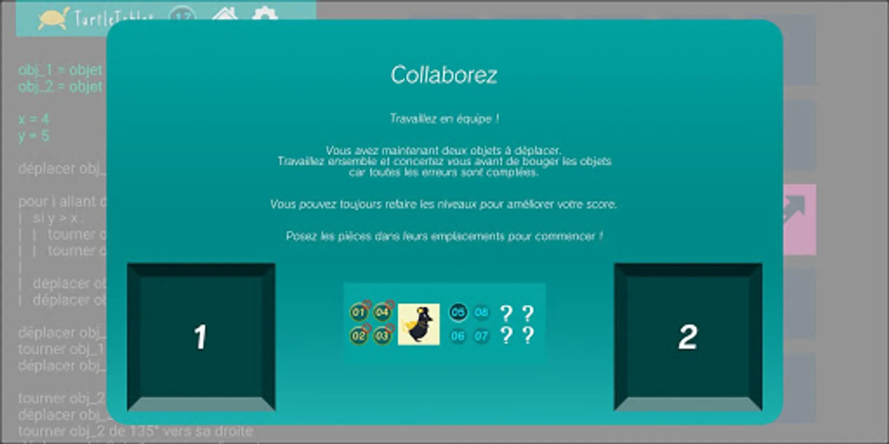 TurtleTablet is a collaborative game to learn the basics of computer programming.