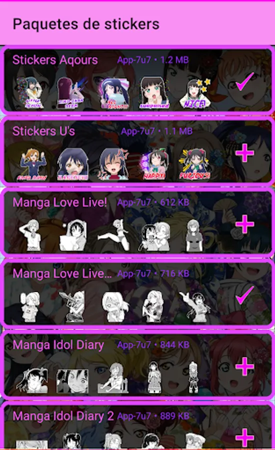 This app includes +600 new stickers of the Love Live anime! also brings stickers with phrases or words.