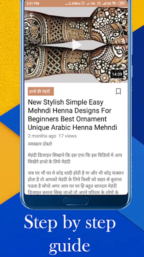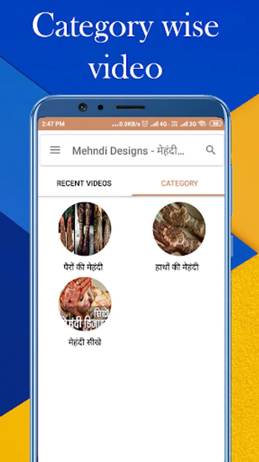 This app has Mehndi Design in different style namely Arabic, Rajasthani, Bridal and Simple.