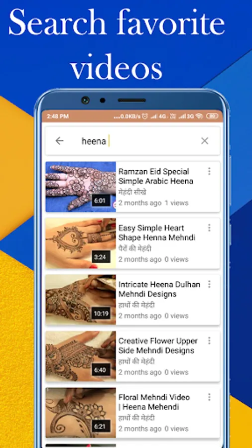A woman's celebration can not complete without Mehndi design. Mehndi design has its own versatile manner of indicating women's personality and style. It is extremely famous throughout the world. Mehndi Design videos app contains modern and traditional mehndi designs 2020 for hands, feets, neck, and tattoos. Mehndi Design videos thin and detailed with lots of colors and Mehndi designs thick and quicker. Heena Mehndi Design videos of Brides, Arabic style, Rajasthani style, Indian style, Pakistani style, Modern and traditional style and fashion. Mehndi Design videos bring you the latest and updated collection of Mehndi design videos. Floral, geometric, modern and traditional designs videos.