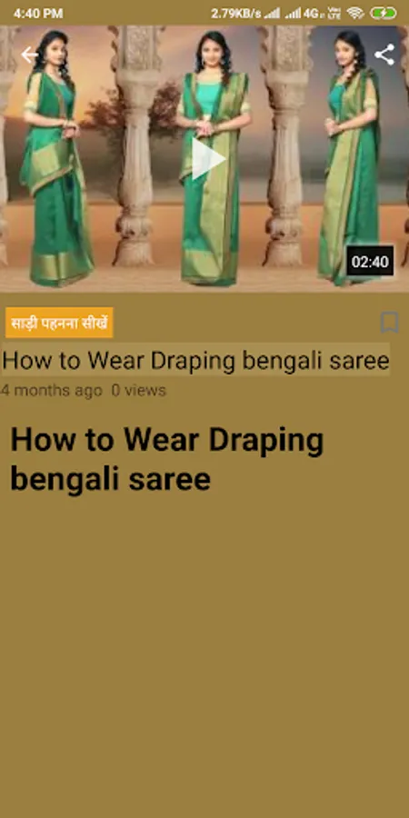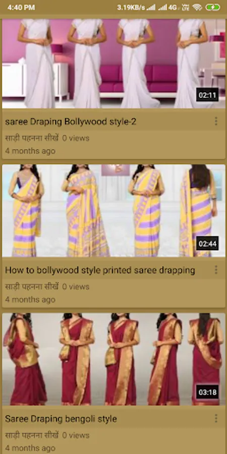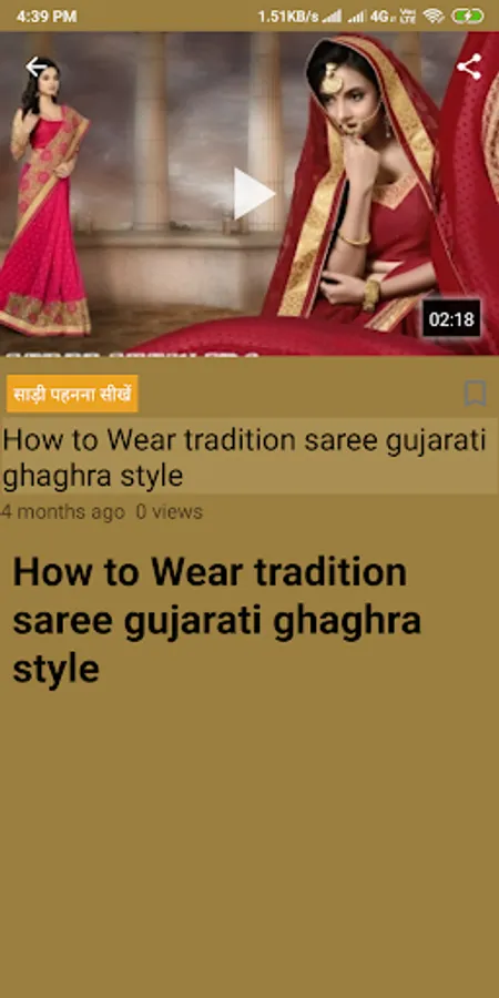 Try to wore saree at home in very easy and simple way by watching How to Wear Saree Videos in this app. In India and all over the world saree carrying or wearing styles are different and in different languages like Gujarati, Hindi, English, Marathi and many more.