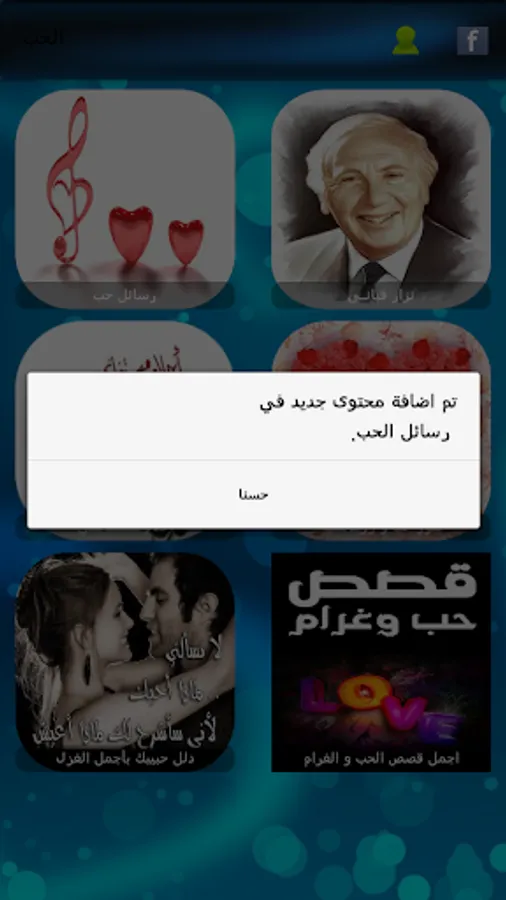 Thank you dear user for your choice application messages and photos with love, contain this application on Love and photos with romantic love messages, and also contains many hair yarn, adoring Kohar Nizar Qabbani romance and contain stories of love and romance and allows you to program participation Photos and love letters in a simple manner and comfortable and what distinguishes this program always renewed content of the images and messages and love stories.