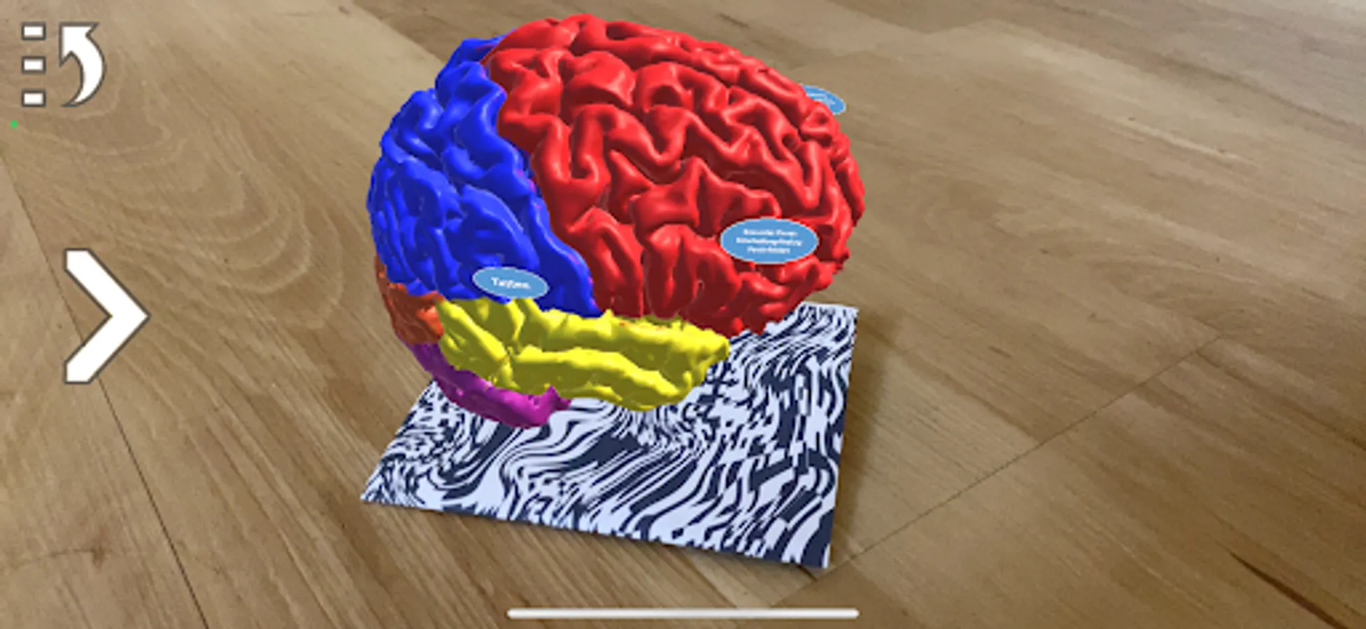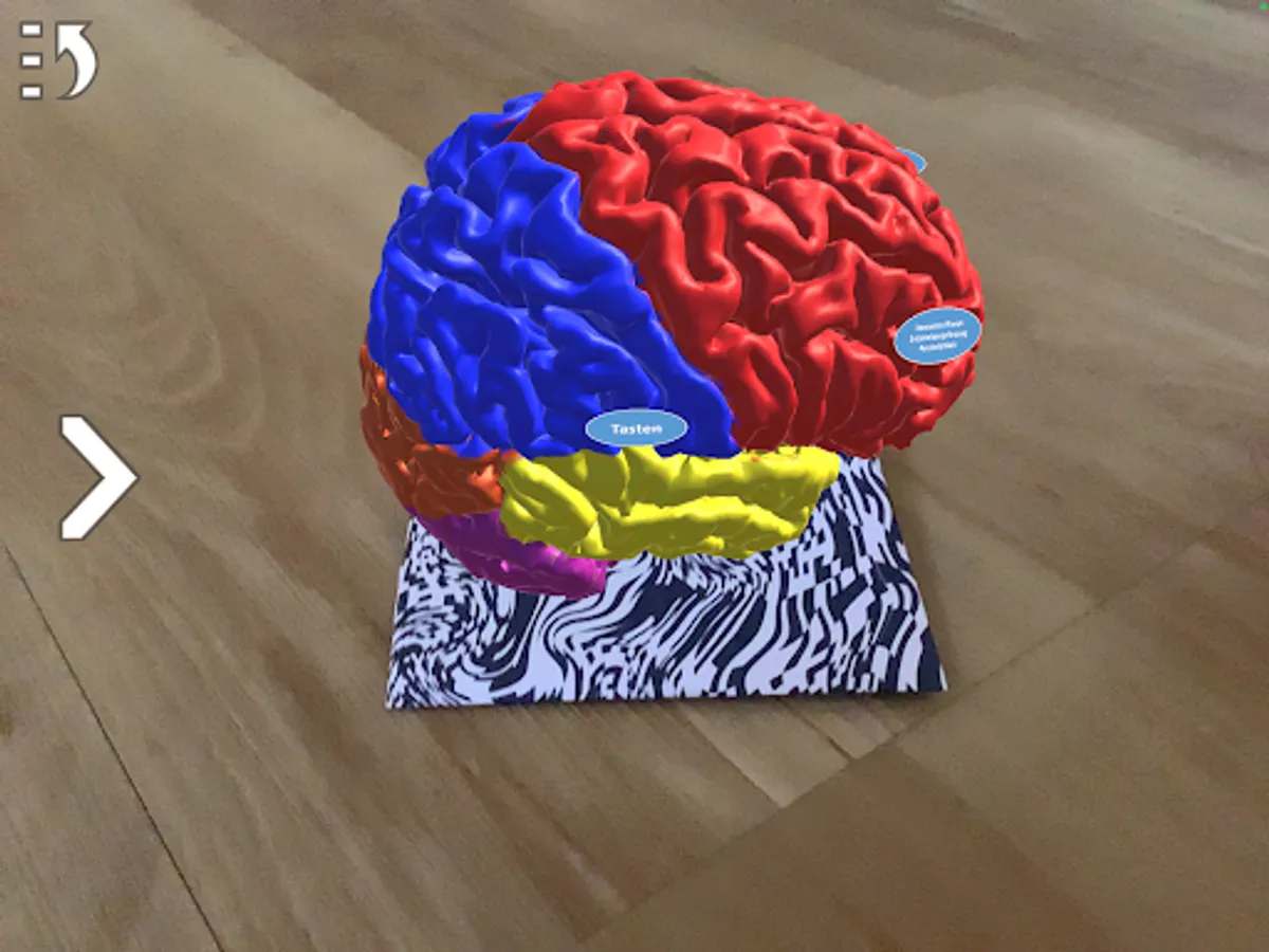 With the help of virtual buttons, the different brain regions can be displayed in color on the brain model at the touch of a button, allowing you to understand important basics of the neuroanatomy of the human brain.