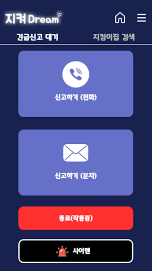 In addition, for those traveling alone on a dark night road, a button that connects a call to 112 on the 'waiting for emergency call' screen, a button to notify registered guardians of an emergency by text message, and a button that sounds a siren are provided. It can protect you from the situation.