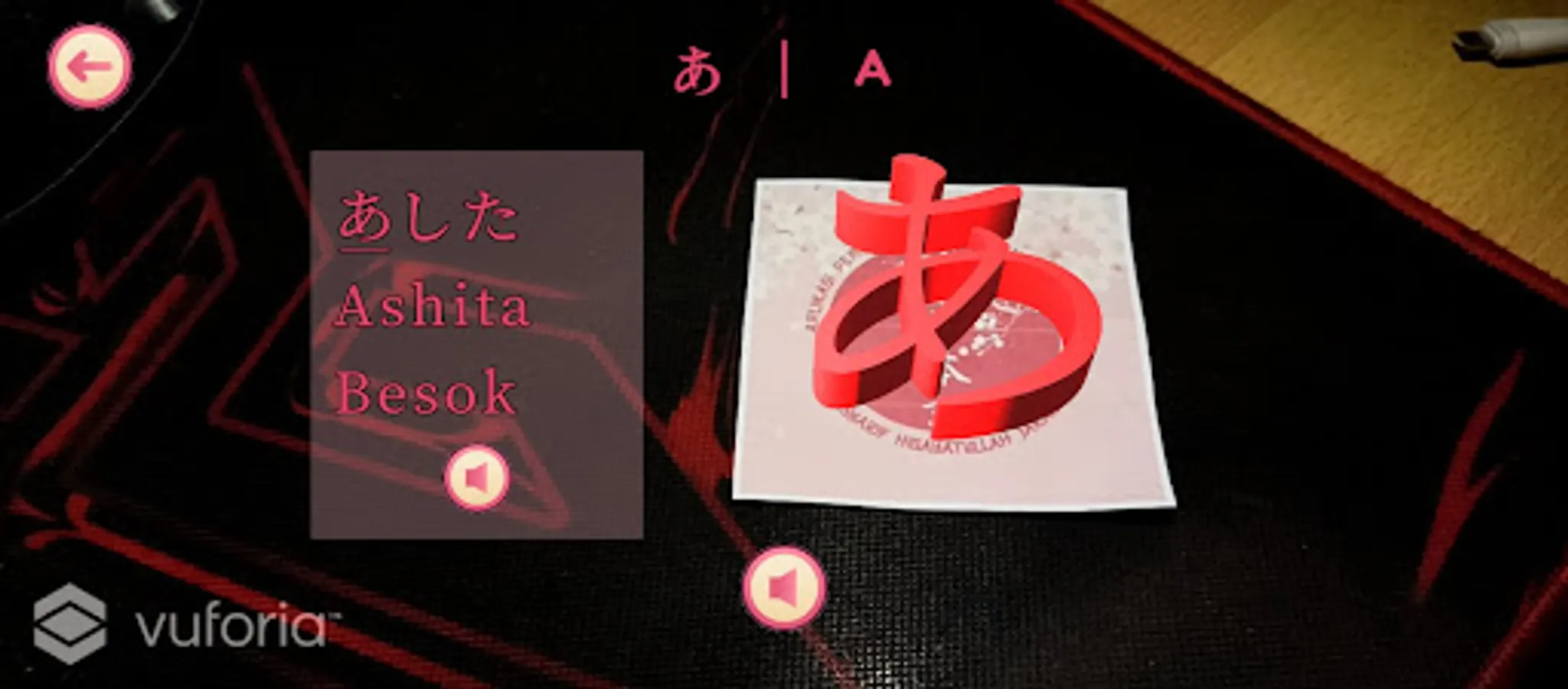 Hiragana and Katakana Learning Application using Marker-Based Augmented Reality technology which is intended for laymen or those who are starting to learn Japanese. The application contains material and quiz games. The use of AR must be accompanied by a marker that has been provided. For more details, please read the guide on the help menu in the application.