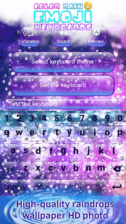 ✲ Different colors and rain drops – the perfect match for your phone! Customize your phone according to your style. If you've always wanted to design your own keyboard themes you can try out our newest app and enjoy the completely unique styles we have prepared for you. This colored keyboard changer is the perfect choice for every person who like different and creative things! Rid yourself of boring and monotonous keyboards and get one of the best keyboard apps with the greatest emoticons ever! Fantastic keyboard themes with emojis can be your today so download it free of charge!!! It is time to change your old keyboard and replace it with our amazing emoticons keyboard!