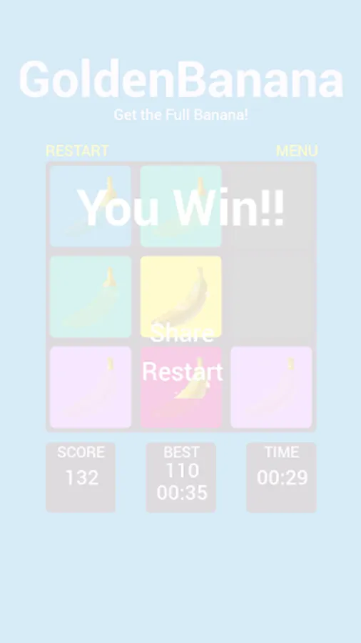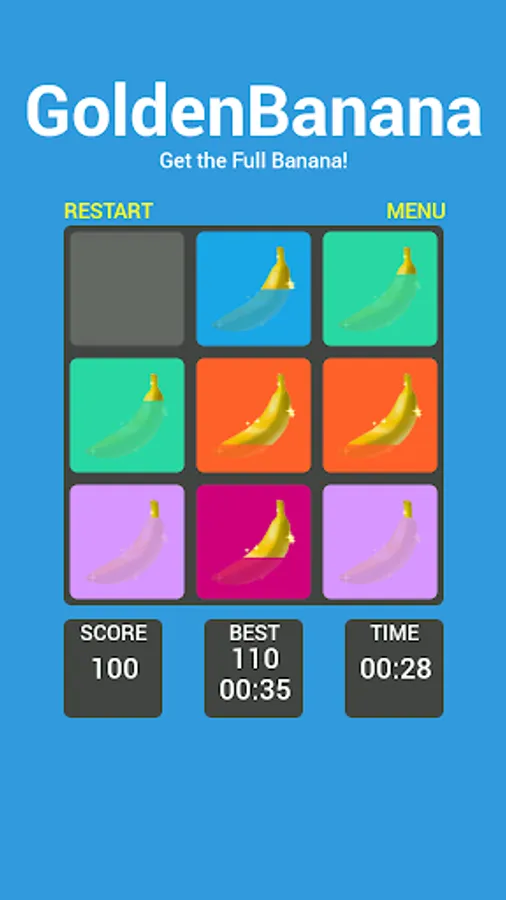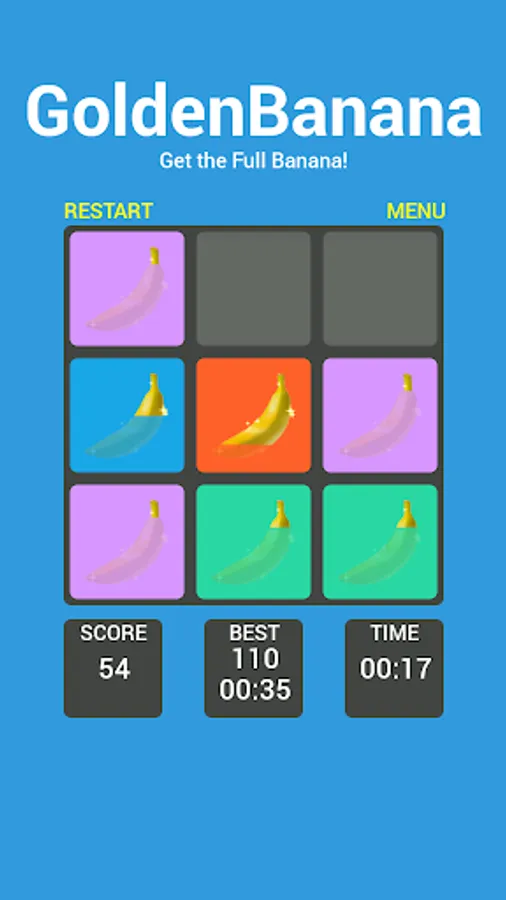 Swipe to move the Bananas parts tiles and merge matching Parts to get a full Banana