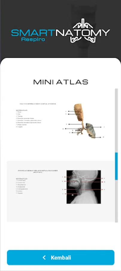 In addition to 3D models, this application is equipped with anatomy learning videos, anatomy miniatlas using original preparations equipped with important structure labels and to test user understanding equipped with anatomy quizzes.
