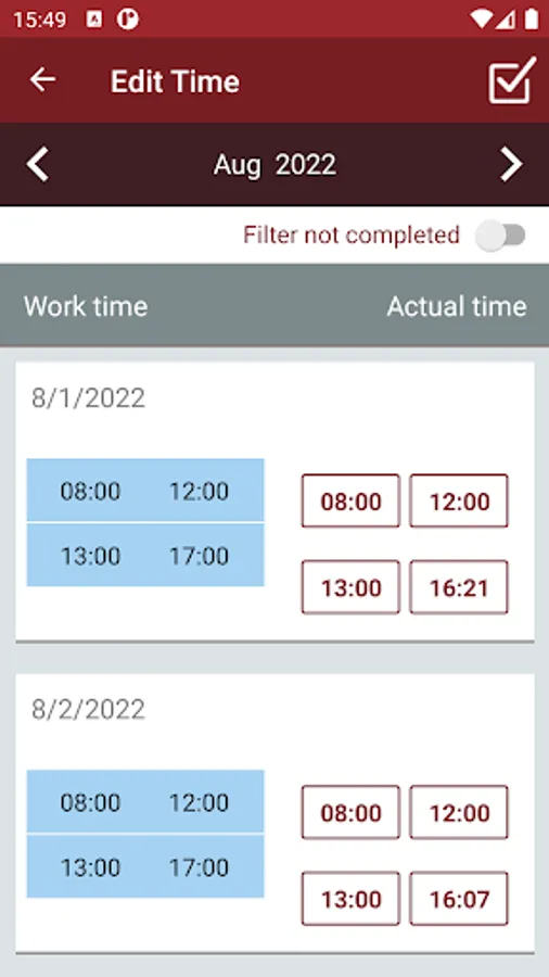 With the TID app, you can stamp in and out during the work day, or you can record the day of the day or previous days, including previously unverified months. New in this version is that you can also see your scheduled working hours, and have an overview of your absences and your sick leave. In the app, you can now apply for absence and enter sick leave, and you can confirm the hourly registration for a month.