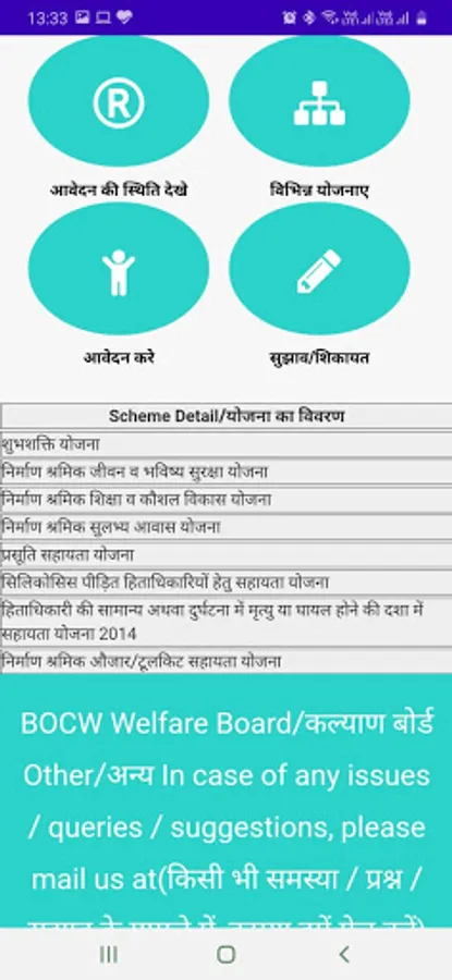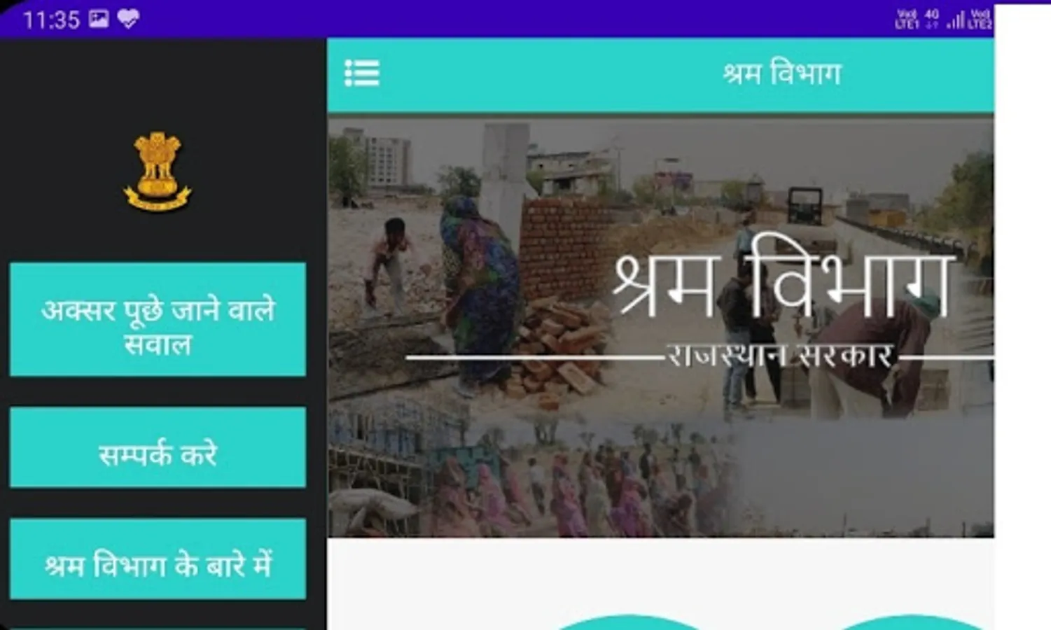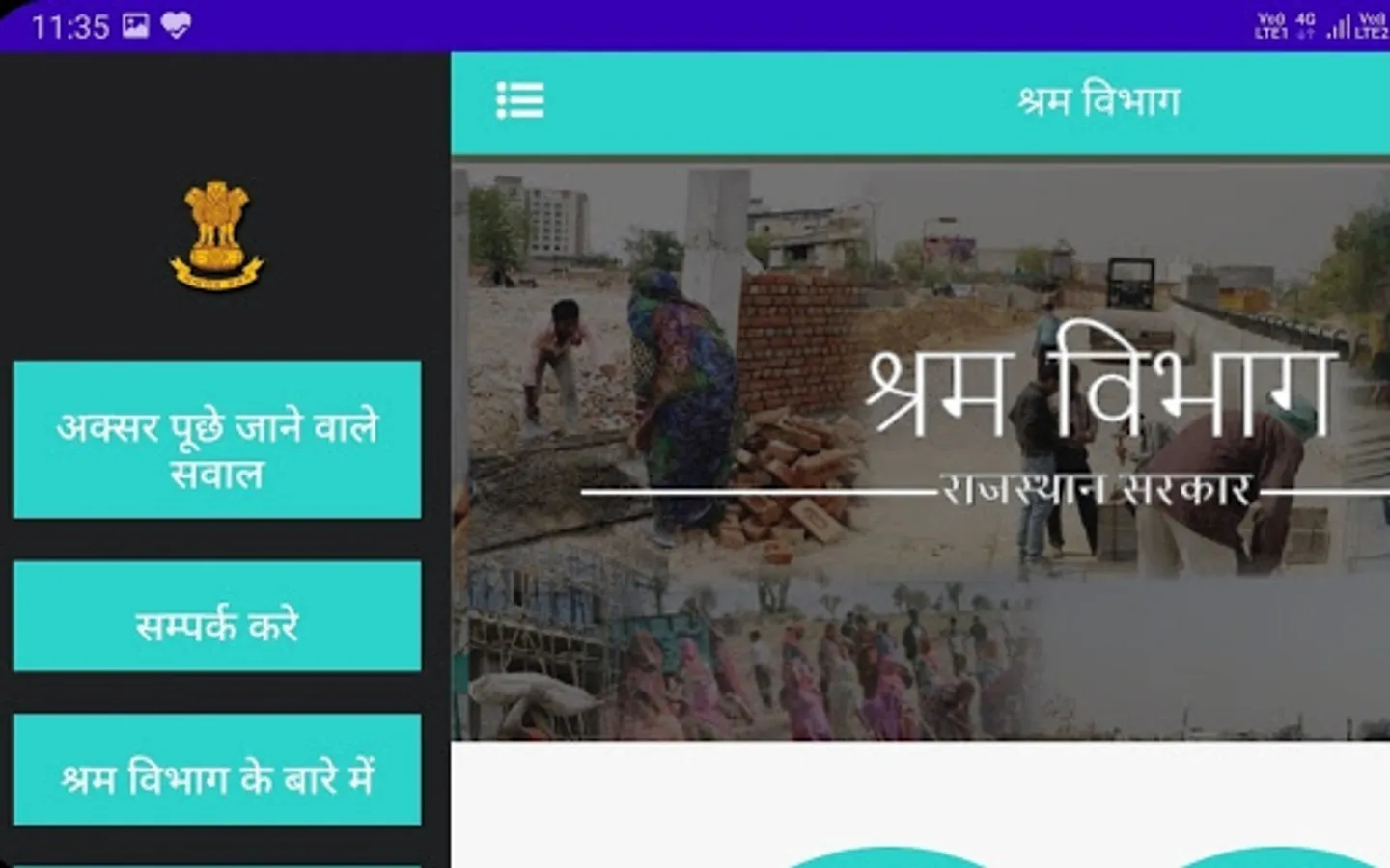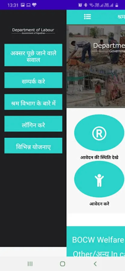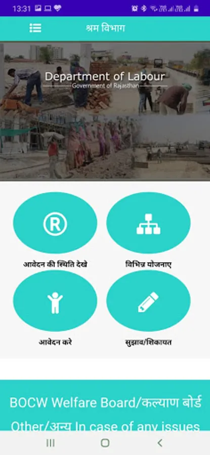 Labour Department of Rajasthan & BOCW Welfare Board offers various services/benefits to the citizens, businesses, industries and the beneficiaries of the Board. To ease out the interaction and access to the services being offered by the department/board, a mobile application (on android platform) has been developed and made available for the stakeholders. Following are the features/services being offered through the mobile application:
