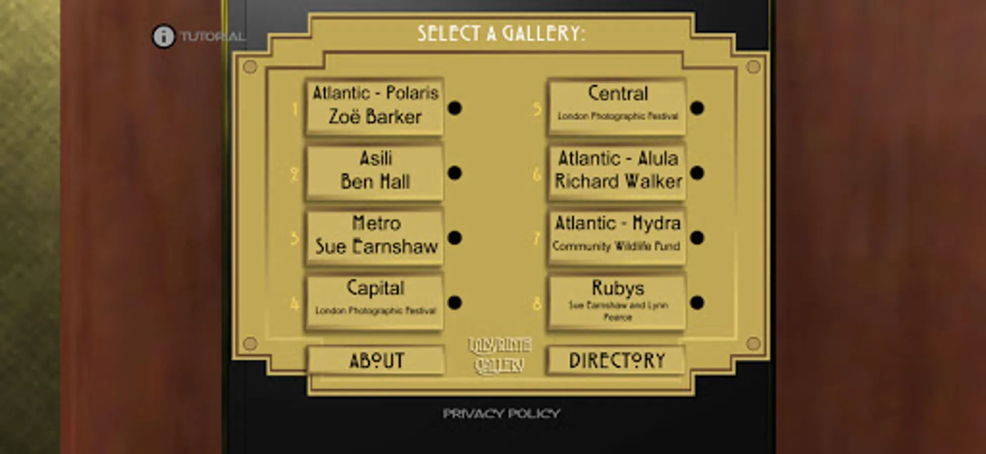 Virtual Gallery hosting several unique exhibition artspaces for visual artists to exhibit and sell artworks within an authentic gallery interior. Visitors can wander around at their own pace viewing quality images in detail and find out more about the artist. All works are for sale and can be purchased easily within each gallery.