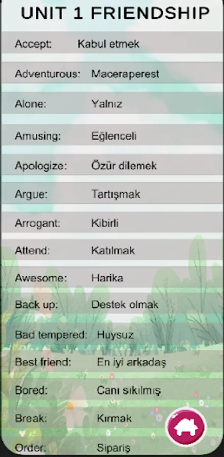 *Unit English Turkish word lists
