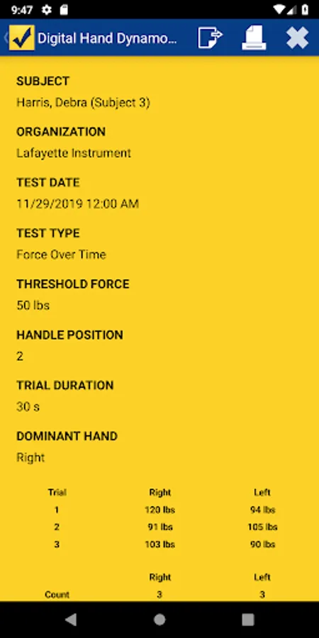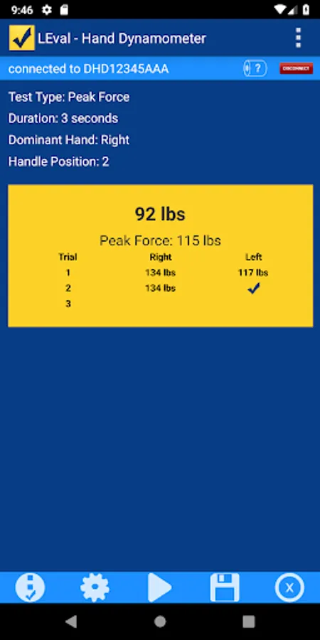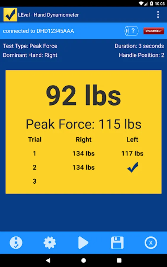Designed for use with compatible Lafayette Instrument Company Evaluation systems, including the Jackson Strength Evaluation System, the VertiMetric Jump Assessment System, and the Digital Hand Dynamometer, LEval provides a wireless connection between a device and a tablet. This connection allows for simple test setup and consistent administration. Subject testing data can be conveniently stored on the tablet for data analysis and easy access to historical charts. With simple controls and an increasing number of compatible devices, LEval will improve the organization and efficiency of patient care or pre-employment testing. Contact Lafayette Instrument for more information.