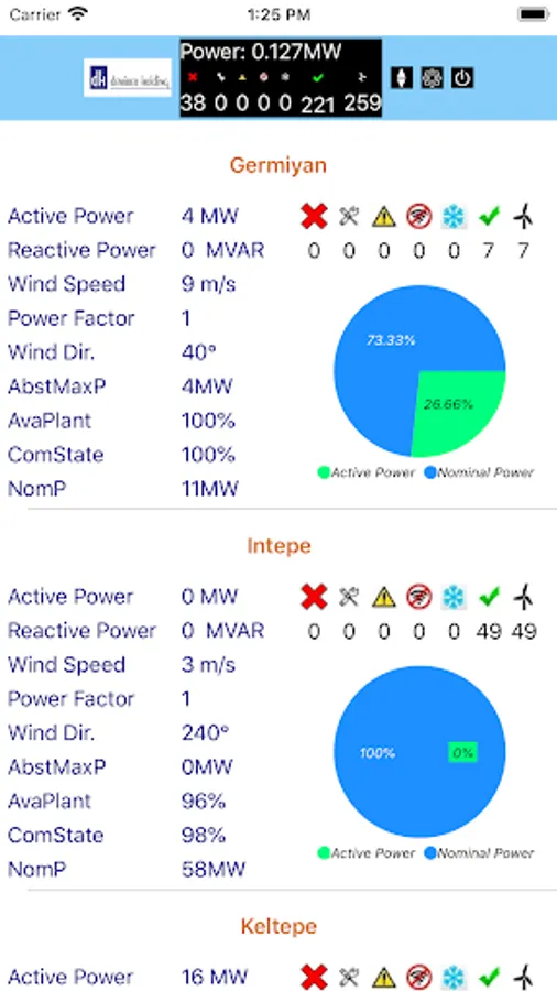 The main purpose of this application is to monitor the technical values from the power plants that are available as our customers.