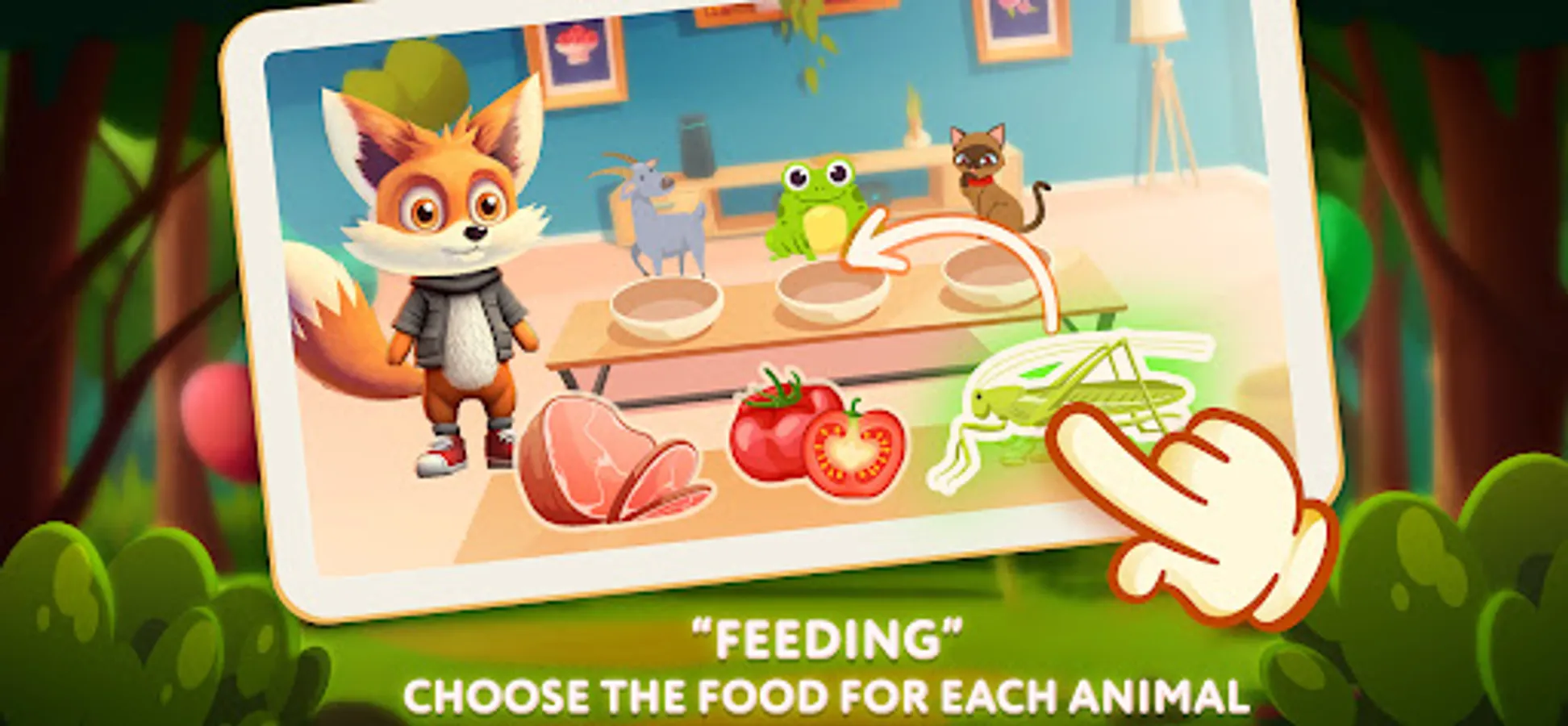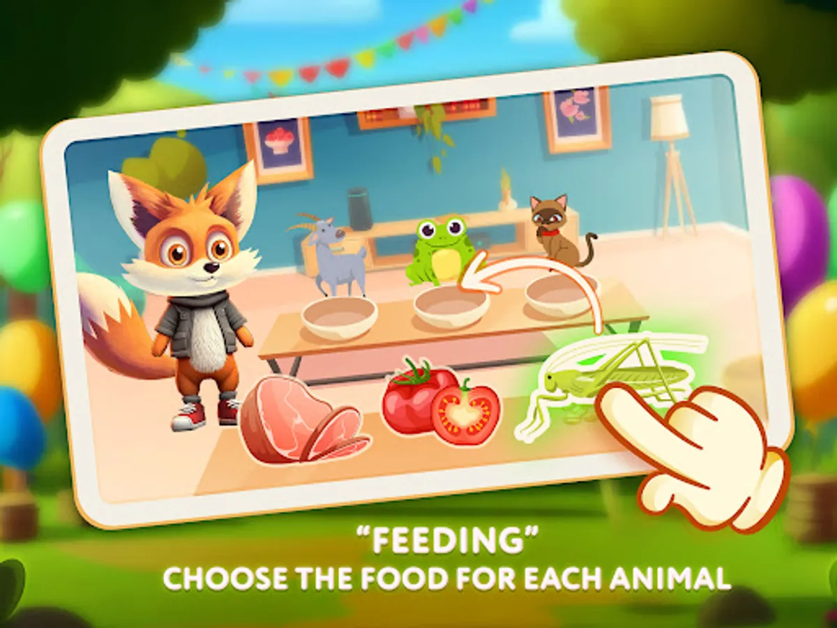 • "Feeding": Choose the right food for each animal, encouraging logical decision-making.