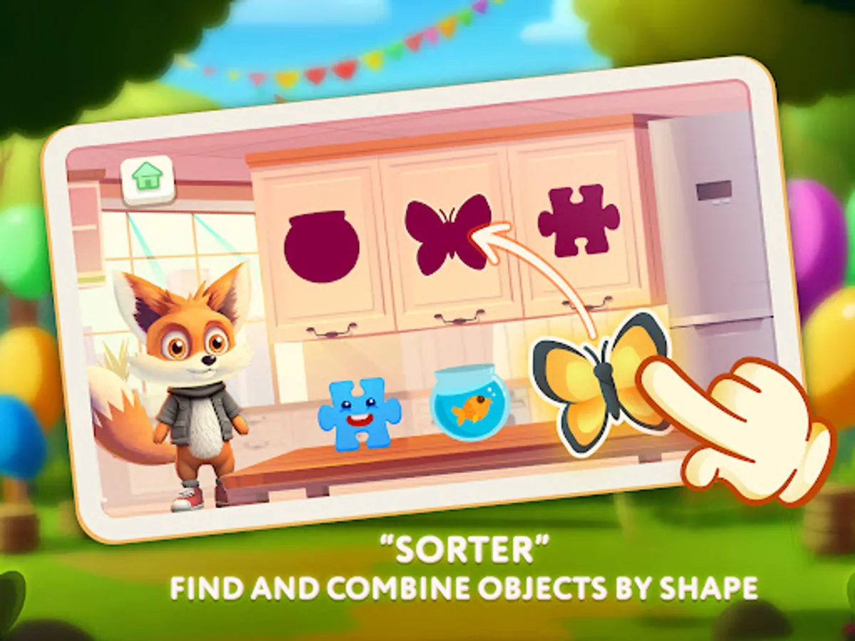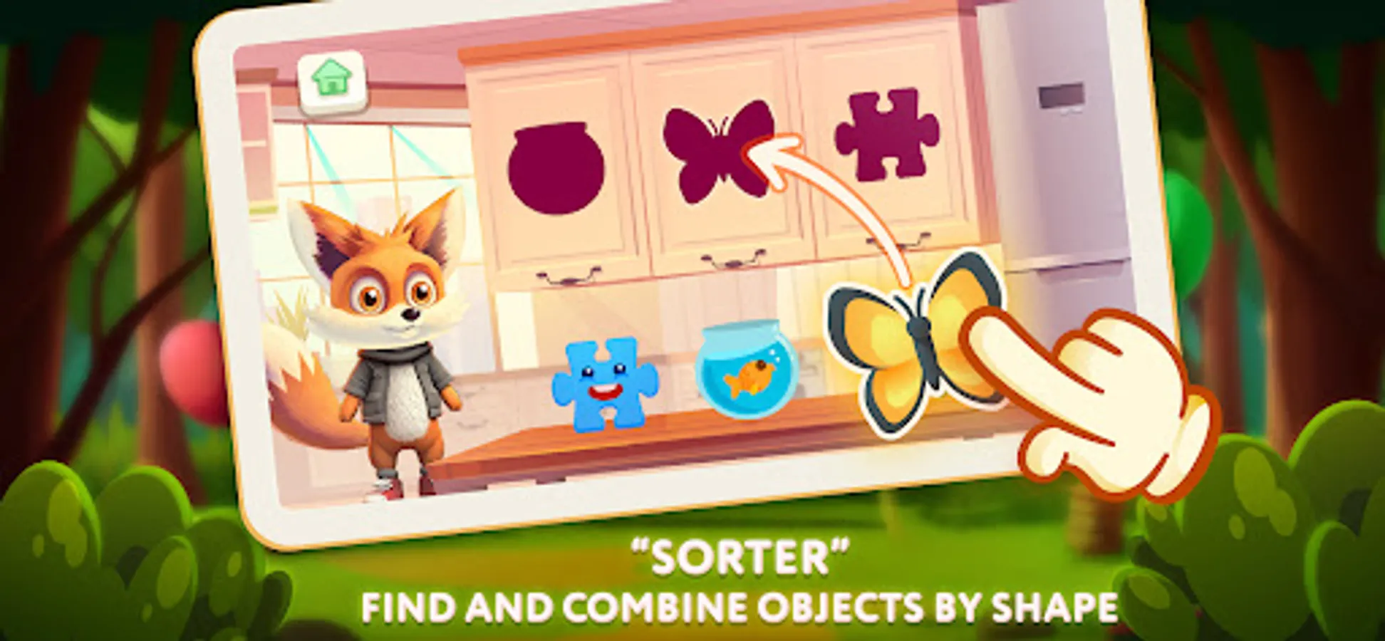 • "Sorter": Find and combine objects by shape, enhancing shape recognition skills.