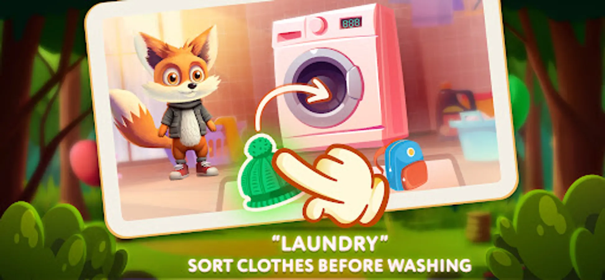 • "Laundry": Sort clothes before washing, teaching organization and categorization.